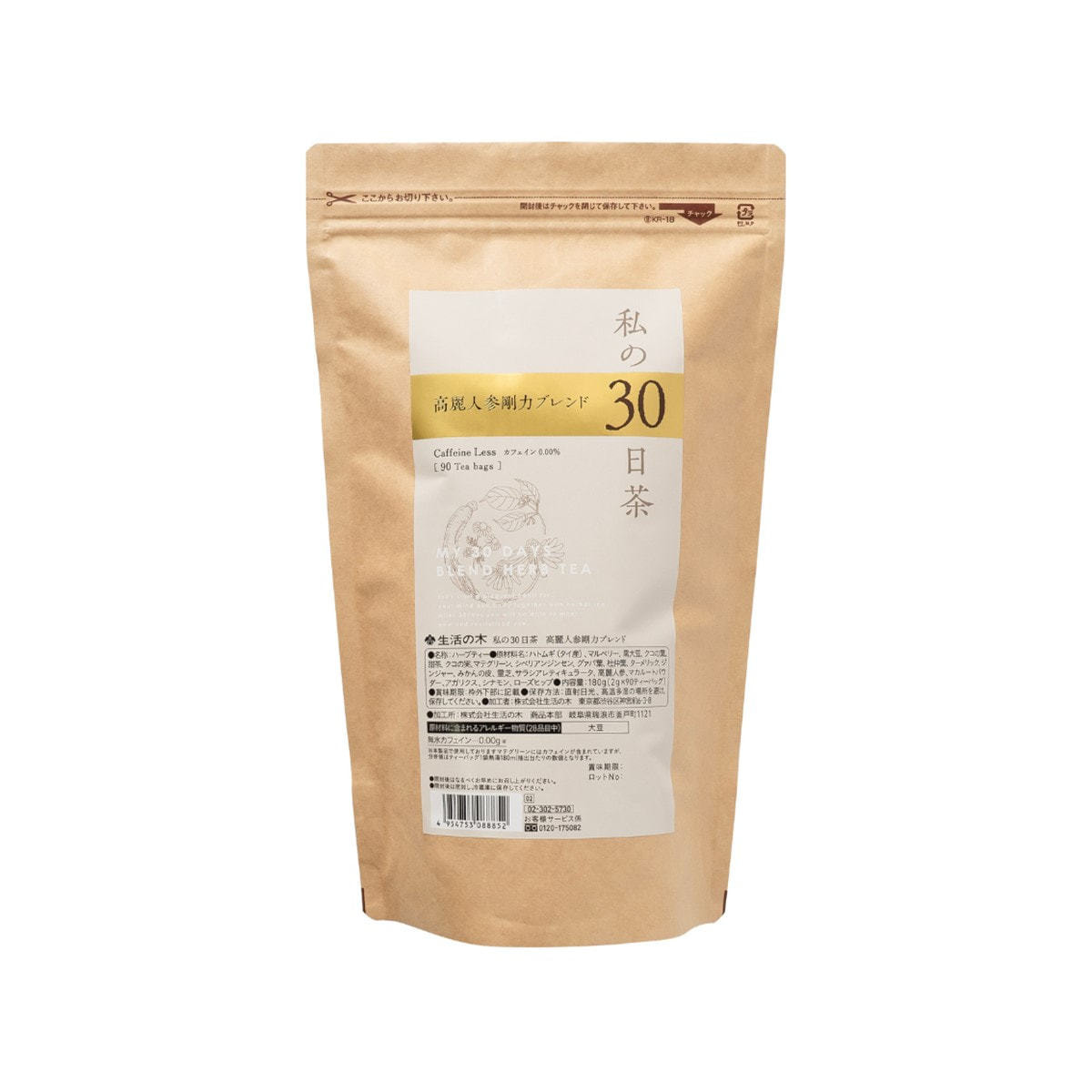 生活の木 私の30日茶 高麗人参剛力ブレンド【ティーバッグ90個入り】