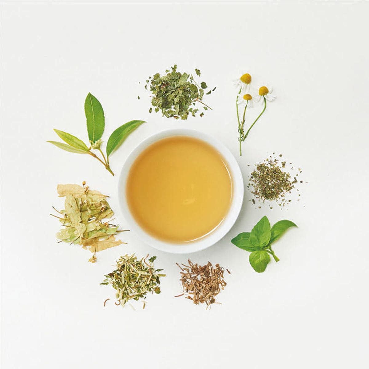 原材料:カモマイルジャーマン(エジプト産)、レモンバーム、レモンマートル、リンデンフラワー、カリフォルニアポピー、パッションフラワー、マジョラム、バジル、バレリアン、アグリモニー