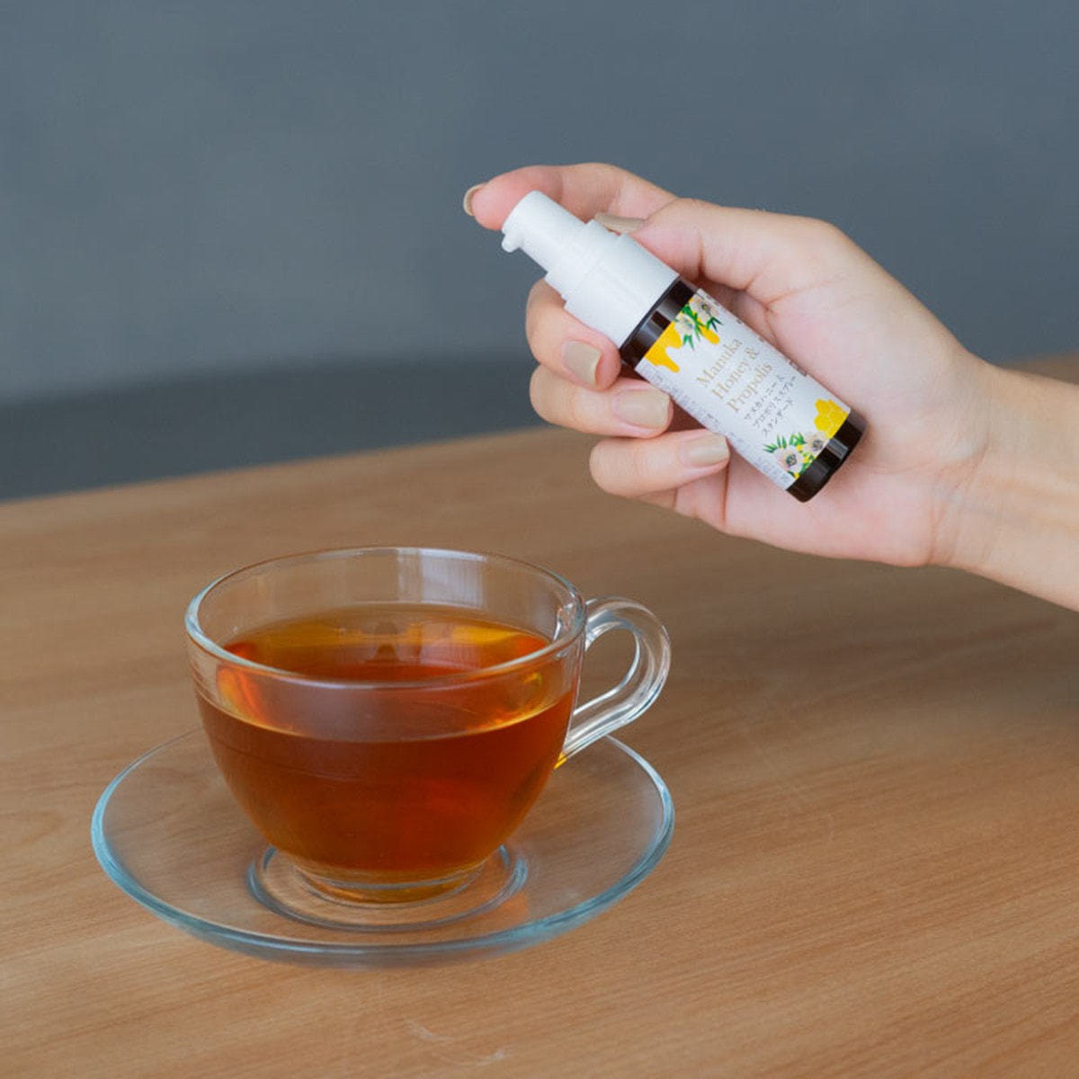 ピリッと刺激のあるプロポリスと濃厚な甘みのマヌカハニーの最強タッグを組み合わせてスプレーにした携帯に便利な商品。